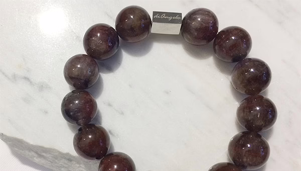 Auralite-23 Quartz Bracelet, beads with a diameter of 14 mm, combined with 1 scratch free stainless steel logo bead.