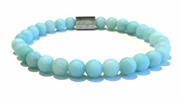 Natural Gemstone Amazonite Bracelet beads with a diameter of 6 mm, combined with 1 scratch free stainless steel logo bead.
