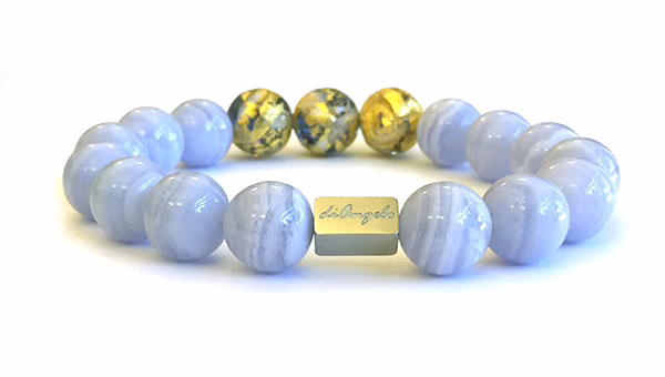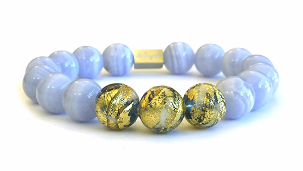 Natural Blue Lace Agate & 3 Beads of Murano Gold Foil Venetian Glass Bracelet beads with a diameter of 12 mm, combined with 1 scratch free stainless steel logo bead.