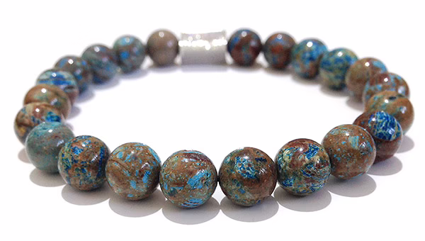 Natural Gemstone Turquoise Calsilica Bracelet beads with a diameter of 8 mm, combined with 1 scratch free stainless steel logo bead.