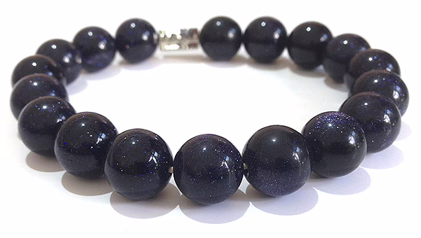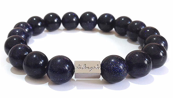 Natural Gemstone Blue Sandstone Bracelet beads with a diameter of 12 mm, combined with 1 scratch free stainless steel logo bead.