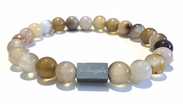 Botswana Agate Bracelet, beads with a diameter of 8 mm, combined with 1 scratch free stainless steel logo bead.
