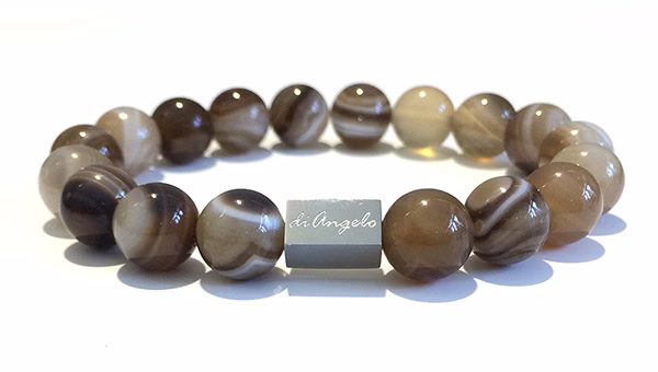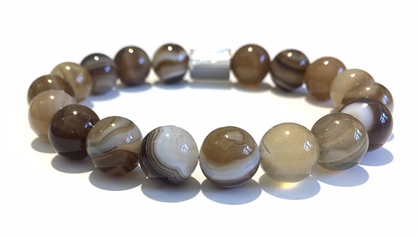 Botswana Agate Bracelet, beads with a diameter of 10 mm, combined with 1 scratch free stainless steel logo bead.