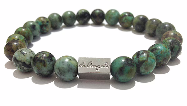 Natural Gemstone Green African Turquoise Bracelet beads with a diameter of 12 mm, combined with 1 scratch free stainless steel logo bead.