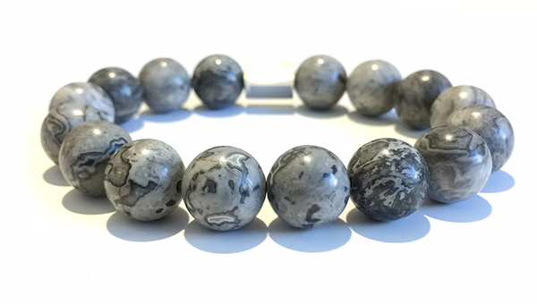 Grey Map Jasper 12mm Bracelet