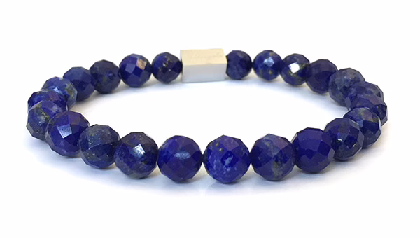 Natural Faceted Gemstone Lapis Lazuli Bracelet, beads with a diameter of 8 mm, combined with 1 scratch free stainless steel logo bead.