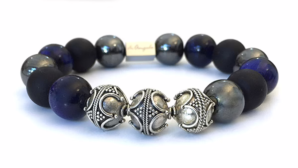 Bali Beads Silver Sterling 925, Blue Tiger's Eye Bracelets, Bracelets, Hematite Bracelets, Obsidian Black Bracelets