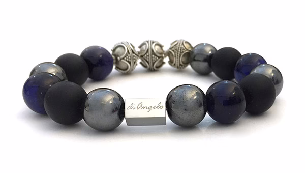 Natural Gemstone Matte Obsidian & Hematite & Blue Tiger’s Eye + 3 Handmade Bali Beads 925 Silver Bracelet beads with a diameter of 12 mm, combined with 1 scratch free stainless steel logo bead.
