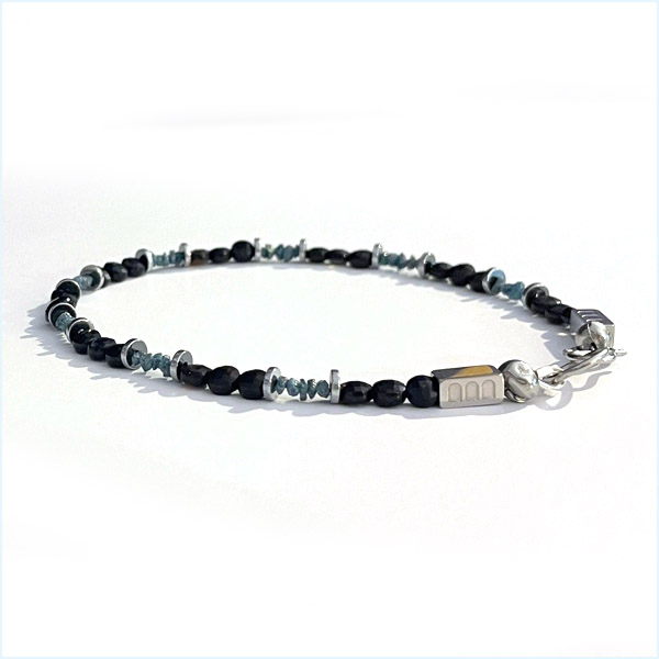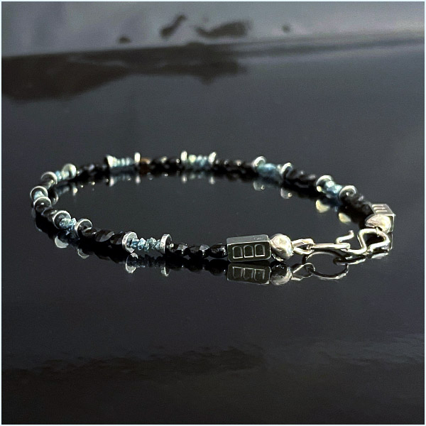 Some things are better together. Raw blue-grey diamonds — uncut, unpolished, straight from the earth — meet deep black faceted onyx in a bracelet that plays light against shadow, rough against smooth, ancient against refined. The result is something that feels less like jewellery and more like geology you can wear.