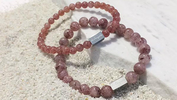 Natural Gemstone Strawberry Quartz Bracelet, beads with a diameter of 6 mm, combined with 1 scratch free stainless steel logo bead.
