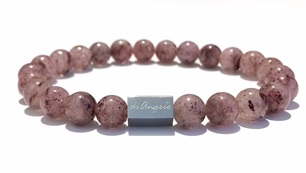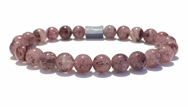 Natural Gemstone Strawberry Quartz Bracelet, beads with a diameter of 8 mm, combined with 1 scratch free stainless steel logo bead.