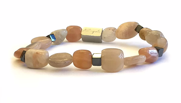 Sunstone bracelet handmade in Rome Irregular 07-11mm & Hematite 4mm Cube