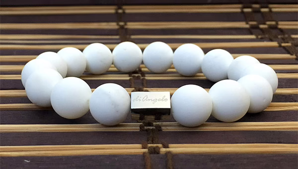 Natural Gemstone Tridacna Bracelet beads with a diameter of 12 mm, combined with 1 scratch free stainless steel logo bead.